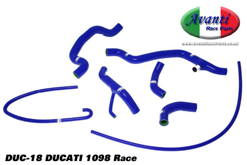 | Samco Hose Kit for the Ducati 1098 including S and R variants for race use: this is the thermostat-bypass kit, so removes the use of the thermostat. Consists of 7 Samco silicone hoses in a colour of your choice. |